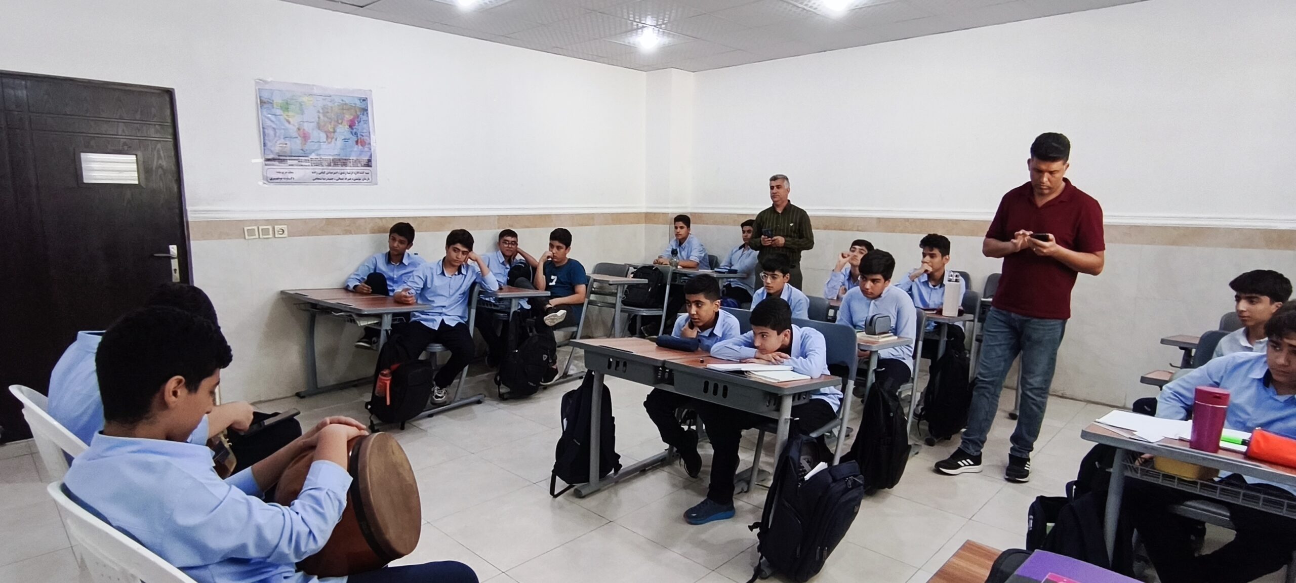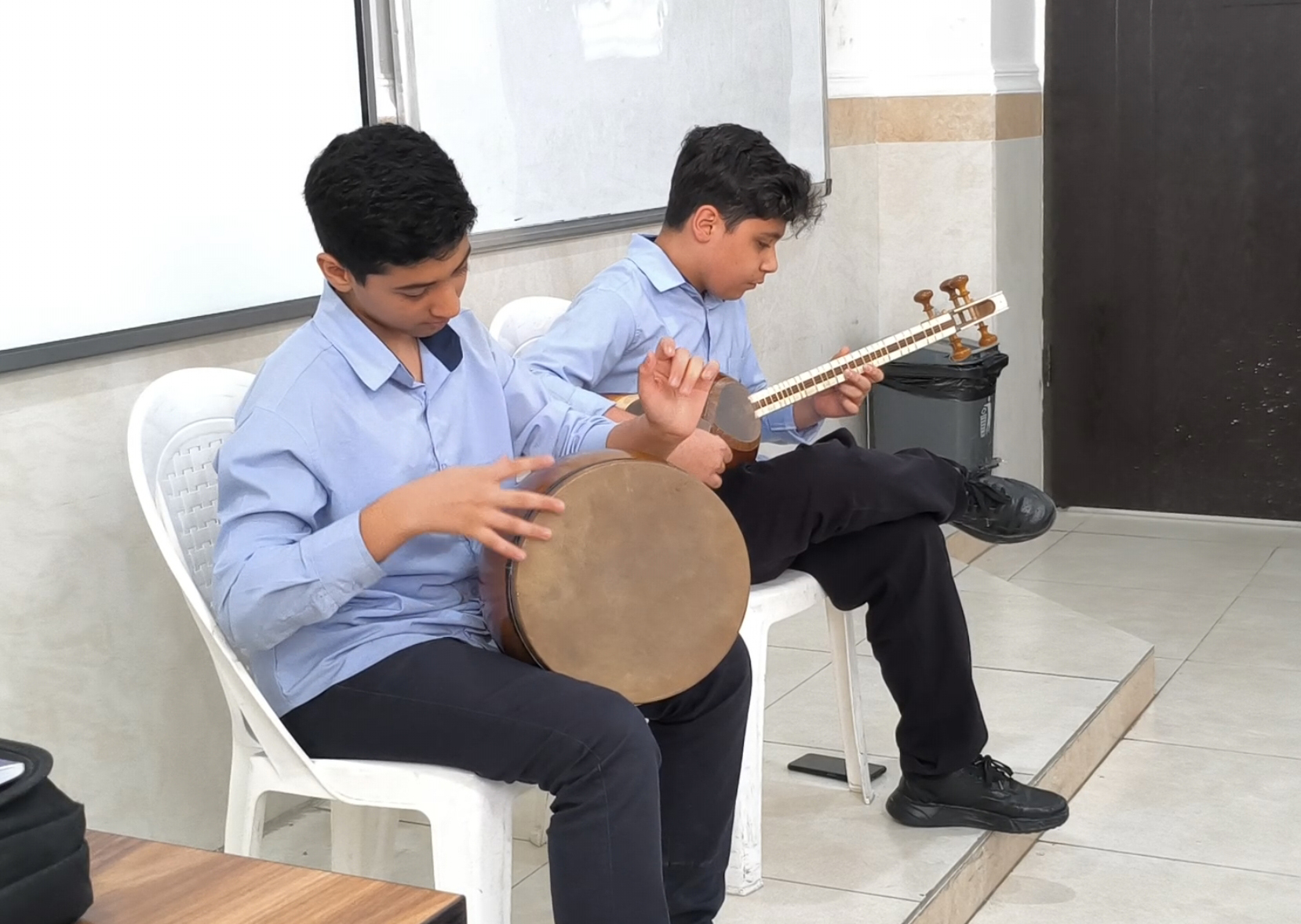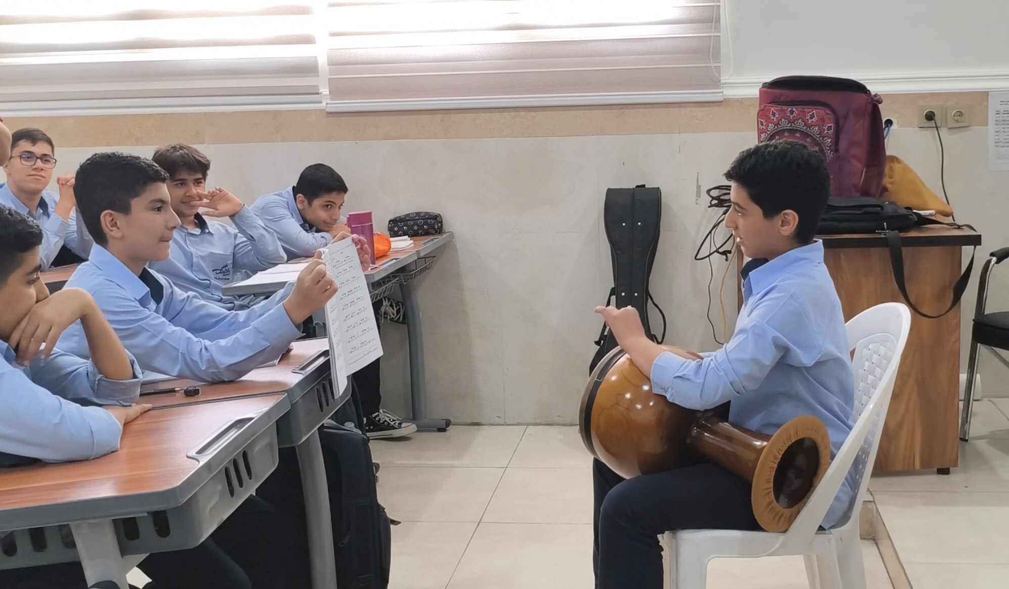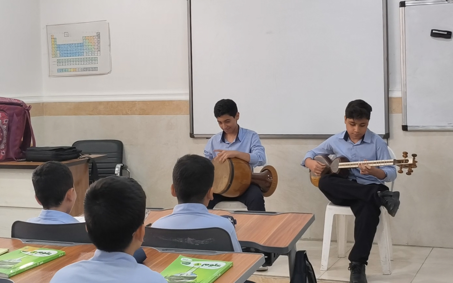 اجرای موسیقی زیبا در دبیرستان غیر دولتی فرهنگ بوشهر توسط دانش آموزان کلاس 802 در تاریخ 1404/7/27 – امیر عباس کبابی زاده (تار) – رادوین امیری (تنبک)